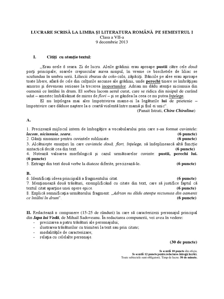 Lucrare scrisa la lb. Lucrare scrisa limba si literatura romana semestrul ii teza la romana pe sem. 0 stele 0 review uri. Lucrare scrisa la limba si literatura roamna semestrul 1 clasa a7a 14 rezultate rezultate.