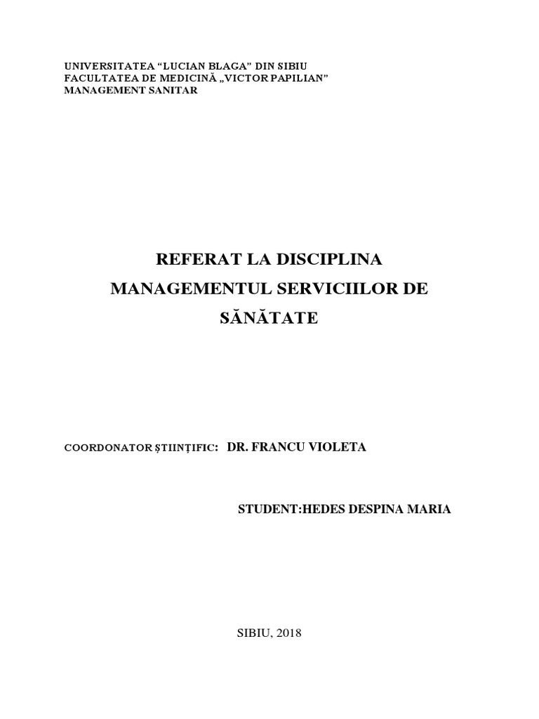 Managementul proiectelor de sanatate referat. Calitatea în managementul proiectelor de sănătate 32 4 1. Constrângerea de timp se referă la timpul. Beneficiile sistemului de management al calitătii 33 4 3. Managementul unitatilor sanitare consta in studierea proceselor si relatiilor de management din cadrul unei unitati sanitare in vederea descoperirii legitatilor si principiilor ce le guverneaza si a conceperii de noi sisteme metode tehnici si modalitati de conducere care sa asigure obtinerea si cresterea competitivitatii.