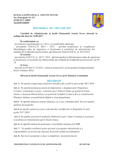 Consiliul de administraţie al unităţilor de învăţământ preuniversitar denumit în continuare în cuprinsul prezentei metodologii consiliu de administraţie este organul de conducere al unităţii de învățământ. Completat si modificat in baza actelor normative publicate in mof pana la 10 08 2015. 4619 22 09 2014 particularizate prin regulamentul de organizare și. Capitolul i dispoziţii generale.