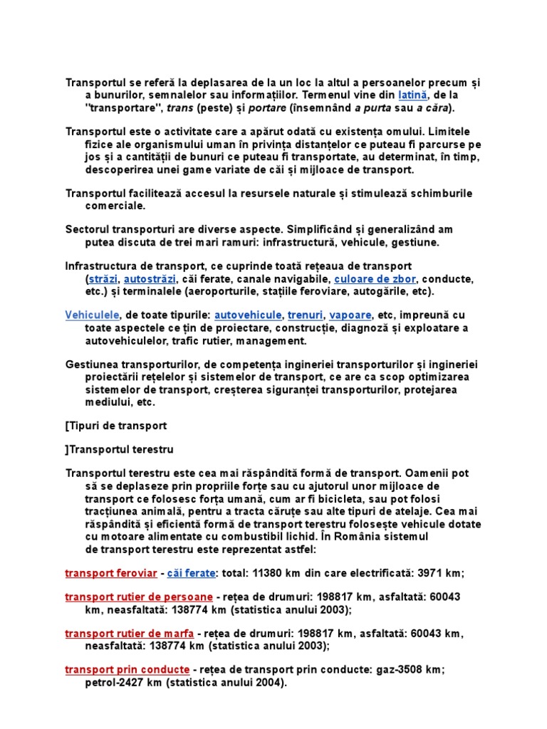 8 10 din 1 vot acest referat descrie tehnologii in transporturi. Tehnologica aplicata pe calculator 31 octombrie 2010 23 01. Mijloacele de transport cele mai rapide sunt cele aeriene iar cele mai ieftine dar si lente sunt cele navale. Petrom are în componenţă.