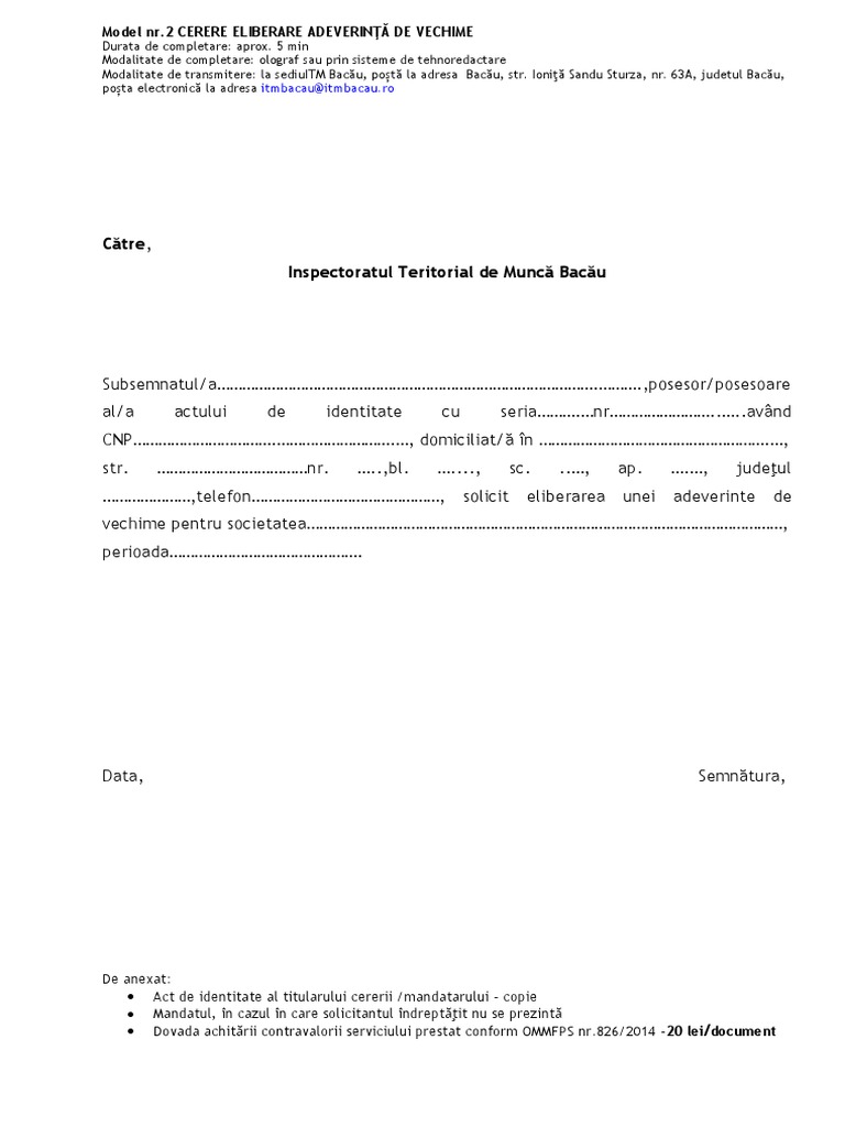 Aceasta obligatie a angajatorului de a pune la dispozitie adeverinta de vechime in munca la cererea angajatului este prevazuta in articolul 34 din codul muncii. Introdu adresa de email pentru a te abona la acest blog și vei primi notificări prin email când vor fi publicate articole noi. Adeverinta de vechime in munca model 2020 adeverinta de vechime itm taxa eliberare adeverinta de vechime adeverinta in munca 2020 model adeverintamunca 2020 vechimea in munca este atestata prin intermediul adeverintei de vechime in munca incepand din data de 1 ianuarie 2011 data cand a incetat emiterea carnetelor de munca. Adeverința de vechime care sa ateste activitatea desfășurată model 2018.