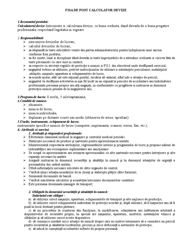 Operator Calculator Fisa Postului